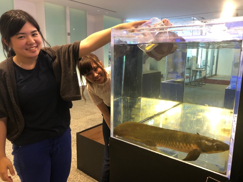 ただ, 男子が多くても関係なく, 彼女たちは日々, とにかく興味のある研究に没頭してくれています. 2人は学部 1 階にある小さな水族館 (アクアリウムラボ) を管理しているメンバーでもあります. なので魚を飼うことに慣れていて, ほとんどお任せ状態です.