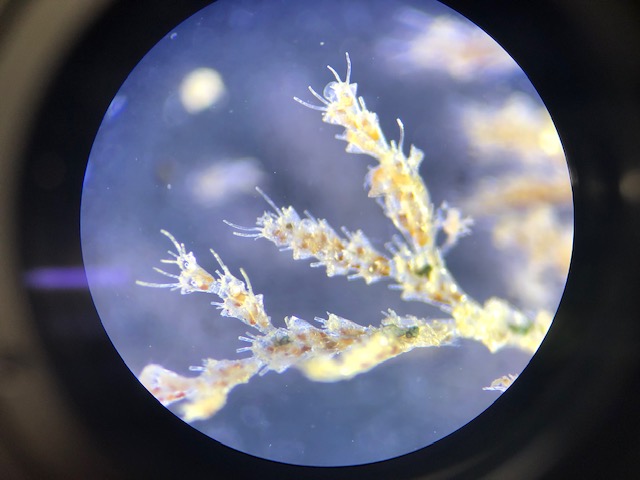 今日の実習は, 昨日いただいたホタテ貝に付着している生物の観察からスタートです ! ホタテの殻には, 重たそうなほどたくさんの生物がくっ付いています. どの生物をブログに載せようか考えていると… 可愛いマボヤいましたよ ! と学生が声をかけてくれました (^-^) それに続いて廣瀬先生 (沿岸生物学研究室) からたくさんの要望が ! なので, 女子うけしそうな生物をお願いしたところ, 一生懸命に探してくれました (笑) 探してくださってる廣瀬先生も可愛かったので, 載せてみました (๑˃̵ᴗ˂̵)