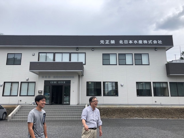 第 3 グループは今日で実習が終了します. 最後は, エゾアワビを養殖している北日本水産株式会社の見学です. この会社の初代社長は, 私たちの学部の卒業生のお父様で, 奥村先生 (水族育種学研究室) と長くエゾアワビの共同研究をしています. エゾアワビの特徴や親しまれてきた歴史などのお話をしていただきました.