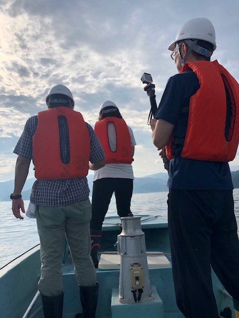 まずは前回と同様に海上のホタテ養殖場を見学しに行きました (^-^) 今回も美味しいホタテをいただきました. 一緒に乗船した女子学生さんは, 直径 5 cm ほどもある貝柱を一口で食べ, 計 3 個も食べていました (^-^)/ いい食べっぷりで, 見ていてとても気持ちが良かったです ♡
