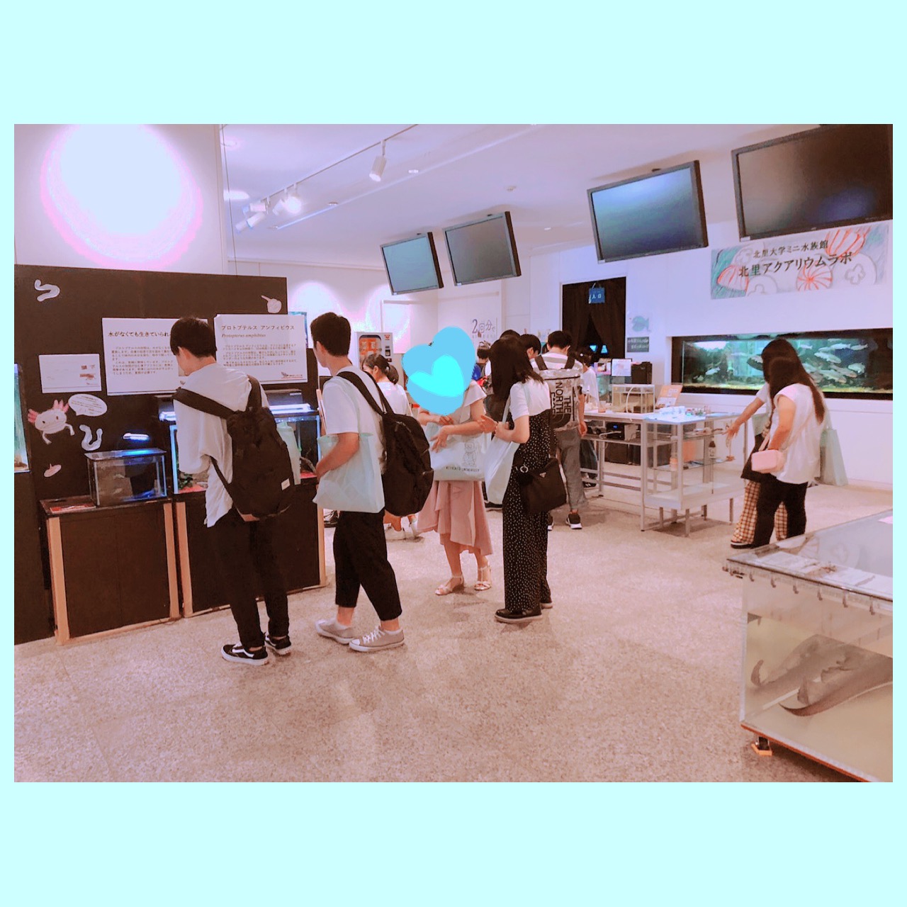 また今回は, 私が担当している学生さんが 3 人, 研究室 (水族生理学研究室) 見学の対応をしてくれました (^-^) たくさんの方が見学に来てくださいました. この3人なら, 楽しさを存分に伝えてくれたと思います ♪( ´▽`) いつも本当に楽しそうですから ! 自慢の学生たちのうちの3人です ♡ もー, 本当に素直で可愛い学生なんです (笑) ♡♡