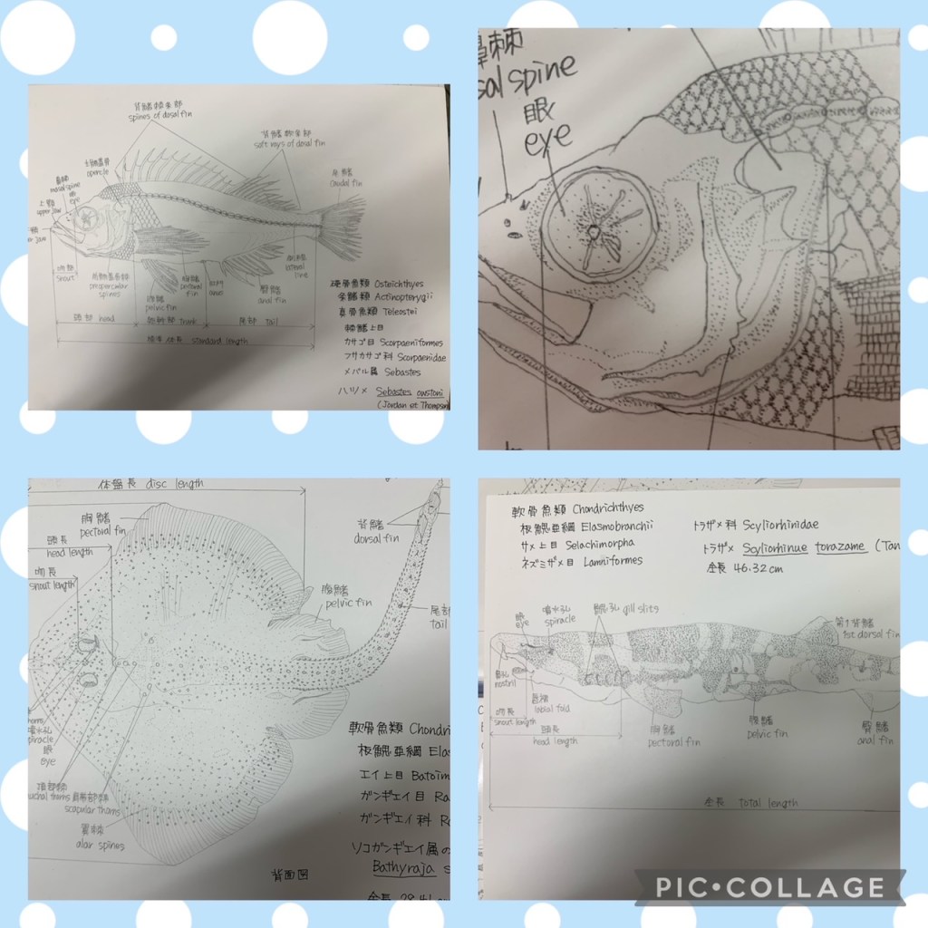 そのあとに春菜先生と魚の話をしていたら, すごいものを見せてくれました ! 春菜先生の学生時代の魚のスケッチです ✏️