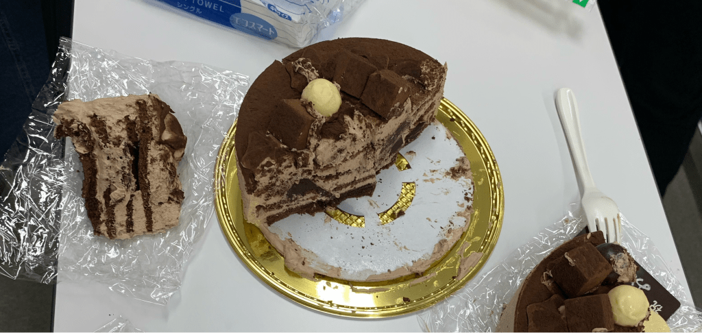 そんな日比野さんと一緒に論文を作成する時間は, 私にとってとにかく楽しい時間になりました 🎵 私は日比野さんから, 指導教員として学生と論文を作成する楽しさを初めて教えてもらいました. この上ない達成感 😌✨ 日比野さん, 吉永先生, 天野先生を始めとする共同研究者の方たちのおかげです. 感謝しかありません 😊 吉永先生にはまたまたケーキをご馳走になりました 🎂✨