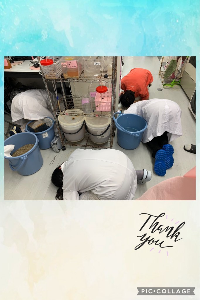 正直, イカナゴの飼育実験はとてもとーっても大変です 😅 それでもしっかり長期飼育をして, 結果を出すことができるのはなぜか. この学生たちの行動が答えの一つだろうなと思いました. そう思うと記録に残したくなり写真を撮りました 📷 あとでこの写真を見た学生は爆笑していました 🤣